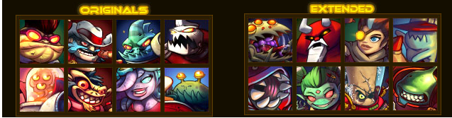 Awesomenauts conta com 12 personagens que podem ser liberados apenas passando de level, e conta com mais 5 personagens que podem ser adquiridos por meio de DLC’s.